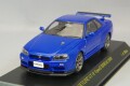 第二世代GT-Rの中で現在でも高い人気を誇り、スカイラインGT-Rとしても最後のモデルとなった、日産スカイラインGT R(BNR34)を1/43スケールダイキャストで新たにモデル化。 実車3Dデータを用いて新規金型を作製。 今回モデル化の3種は、後期型VspecIIと、2002年に最終限定車として販売されたVspecII Nur。 VspecIIはBayside blue、VspecII Nurは限定色のMillennium jadeとWhite pearlの2色。