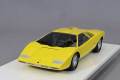 【車両解説】 カウンタックのプロトタイプと訊いて、多くの方が市販間近の試作車をイメージされると思いますが、今回モチーフとしたのは、カウンタックというクルマが1971年のジュネーブショーで初披露された時の個体で、1974年に発売される市販車とはまったく異なる手法、車体構造で作られたワンオフ車両でした。 楔形フォルムのアウトラインは市販モデルと共通したイメージを持ちますが、ディテールを追っていけば、ドア開口部の形状、サイドウィンドウのサッシュ意匠、左右フェンダー上面から一段落とされたフロントフードや、その後端に備わったエアインテークなど別物であることがわかります。カウンタックはエンジンの放つ熱の抜けが悪く、その対策が市販化にあたり大きな課題であったと言われていますが、その対策のために大きなインテークなどが備わっていないプレーンな造形に、おそらくはガンディーニの思い描いたカウンタックの理想形があるはずです。 また実車では全長も市販車より10cmほど短くなっています。のちにランボルギーニ大きな名誉をもたらした名車のかけがえのない試作車でありながら、その末路は悲しむべきもので、最終的には前面衝突実験に使用され廃棄されため現存はしていないと言われています。