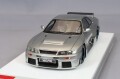 1995年のルマン24時間レースに出場する為のホモロゲーションモデルとして製作された「ニスモGT-R LM ロードカー」を忠実に再現したモデルとなります。 カラーリングのないシンプルな車両なので前後ライトの形状や中身のディテールには特にこだわってパーツ分割や彩色を行っています。 メッキ、クリアカラー成型部、艶消しのブラックの部分を的確にパーツ分割することによりシャープな仕上がりを目指しました。 90年代のレースシーンではおなじみのVOLK RACING Gr.Cホイールは真鍮切削のマスターを製作、ホワイトメタルのキャスト部品で精密な部品に仕上げました。 実車と同じくあえてタイヤを少し内側に、また車高も少し高めにセットすることによりこの車両の特徴を再現しています。