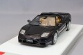 バブル期の潤沢な開発予算の恩恵を受け、ホンダの“技術の結晶”とでも言うべき内容を盛り込んで1990年に発売されたのが初代NSXでした。 フェラーリとの類似性もよく話題に上りますが、実際は凝ったエンジニアリングに加えて、ゴルフバッグが収容可能なトランクスペースを備えるなど、日本車らしい実用性も兼ね備えたスーパー・スポーツとして世界各国で評価されています。 初代NSXは1990年の登場後、1992年には後のホンダ・スポーツのアイコンとなるタイプRを発売、1997年には平成12年(2000年)排ガス規制の対応策としてエンジンの排気量を旧来の3.0リッターから3.2リッターへと拡大して(AT車は3.0リッターのまま)中期型へとシフトします。 エンジンは1999年にも改良が行われて「優-低排出ガス」車の認定を受けており、他のメーカーの多くが平成12年排ガス規制をのクリアを諦めてスポーツカーの製造を中止したのとは対照的で、CVCCに始まるホンダの環境意識の高さを物語っていると言えるかもしれません。 これを機に一般的には3.0リッター車をNA1、3.2リッター車をNA2と呼ぶようになりました。 2001年にビッグマイナーチェンジが行われた際にタイプTも同時に発表が行われました。 【モデル解説】原型の製作にあたっては、NSX-R同様、実車の3Dスキャンを行い、そこで採取したデータを元に意図的な形状の強調といった主観的なデフォルメの一切を行わないプレーンな造形を目指しています。 固定式ヘッドライトのNA2といえば弊社ではNSX-RとNSX-R GTをモデルカー化していますが、今回はバリエーションモデルとして発売されたタイプTの登場です。 些細なことですが、1/43のモデルカーとしては限界に近い細くそしてしっかり陰影がつくように深く彫り込まれたパネルラインなども注目していただきたいポイントとなっております。 ルーフパネルは実車同様に着脱可能となっているため、作り込まれたコックピットもじっくり観察してお楽しみいただけます。 シートの質感やインテリアのディテールにもこだわって製作しました。 またインテリアも映えるカラーをチョイスしています。 ホイールはシャープな造形が可能なホワイトメタル鋳造部品に丹念な塗装を施して、実車さながらの雰囲気に仕上げています。 アクリルベース、クリアーカバー付属