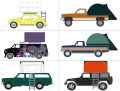 ●クラシック フォルクスワーゲン ビートル イエローフラワーパワー with Camp'otel カートップ スリーパーテント ●1986 GMC シエラ リフテッド デザートサンド & ドスキンタン with モダントラック ●1978 GMC バンデューラ カスタム バン ウィザード wih Camp'otel カートップ スリーパーテント ●1987 フォード F-150 XLT ラリアット ダークブルー/タン with モダントラック ベッドテント ●1990 シボレー サバーバン グリーン with モダンルーフトップ キャンパー ●2008 ジープ ラングラー アンリミテッド ルビコン ダークチャコール with モダンルーフトップキャンパー