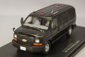 GMのフルサイズバン、シボレーエクスプレスを使用した警護車両をモデル化。 GM版の ハイエースやキャラバンとも言えるこの車はアメリカでは商用車として多く使われている。 2008年の洞爺湖サミットに合わせて多くの警察車両が納入された際にメルセデスベン ツの警護車両と一緒に数台のエクスプレスも配備され要人警護等に使われている。 主な配備先としては警視庁、福岡県警察、大阪府警察など大都市を持つ県警に配 備されていることが多い。 外国要人が来日した際などに多く運用されており、左右とリア のウィンドゥにはガンポートが付いている。 前面赤色灯は無く、マグネット式の赤色灯を2 個、TAアンテナ等を装備しているが、県警や運用される時によって赤色灯の位置など が変わることがある。