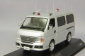 日産のキャラバン(E25)を使用した無線車両を1/43スケールでモデル化。 キャラバンは2012年に現行のE26型NV350にモデルチェンジし、警察車両でも続々と配備が進んでいるが、この無線車両は現在でも現役。 主に警備部で使用されることが多く、大規模な警備事案や機動隊が出動する現場などで目撃されることが多い。 この車両は多数の無線を処理・報告する為に多くのアンテナを装備している。 外に出ているだけでも垂直のアンテナが天井に5本、そして天井の前方にはTAアンテナを装備している。 ベースのキャラバンは既にモデル化している事故処理車や、鑑識車両のグレードとは異なる為、メッキのドアミラーなど細部が異なる。 又、運用時にはマグネット式の赤色灯を前後に2個付けている。