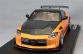 トップシークレットの最新デモカー「フェアレディZ (RZ34) 」を1/18スケールレジンモデルで再現。 ボディカラー:オレンジメタリック。 OZ SFタイプ 20インチホイール(メッキ)にローダウン仕様。 カーボンボンネット、専用エアロパーツ(フロントリップスポイラー、フロントフェンダー上部に専用ダクト、サイドステップ、リヤフェンダー)、GTウィング、左右2本出しマフラー、ボディの各所に専用デカール、大型ブレーキキャリパーを装着。 内装はノーマル仕様です。 ※画像は試作品です