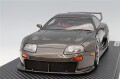 「Supra (A80) TRD 3000GT」を1/18スケールレジンモデルで再現。 ボディカラー:ガンメタリック。 TE37タイプ18インチホイール(ポリッシュ&ガンメタリック)にローダウン仕様。 専用エアロパーツ(フロントバンパー、前後ワイドフェンダー、ボンネット、サイドステップ、リヤバンパー、リヤウイング)を装着。 大型ブレーキキャリパー(レッド)、左右ドア下に専用ロゴ、バケットシート(レッド)、4点シートベルト、ロールバー、専用ステアリングを装着。