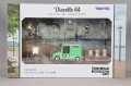 「ドーナツ屋」をテーマにしたフィギュア・小物のセットです。店員やお客さんのフィギュア、各種ドーナツプレートなど、おしゃれなケータリングカーを演出できます。ミニカーのリアゲートを開けて荷室の棚にドーナツを並べれば雰囲気満点! 付属のラベルシールでオリジナリティあふれるお店を作ることも可能です。【セット内容】 ●ダイハツ ミラ ウォークスルーバン 移動販売車(薄緑)(トミカリミテッド ヴィンテージNEO) ●ドーナツ屋店員 ●お客さん(親) ●お客さん(子) ●ドーナツプレートA ●ドーナツプレートB ●ドーナツプレートC ●ドーナツプレートD ●ドーナツプレートE ●エスプレッソマシン ●机 ●イス ●サインボード ●ラベルシール